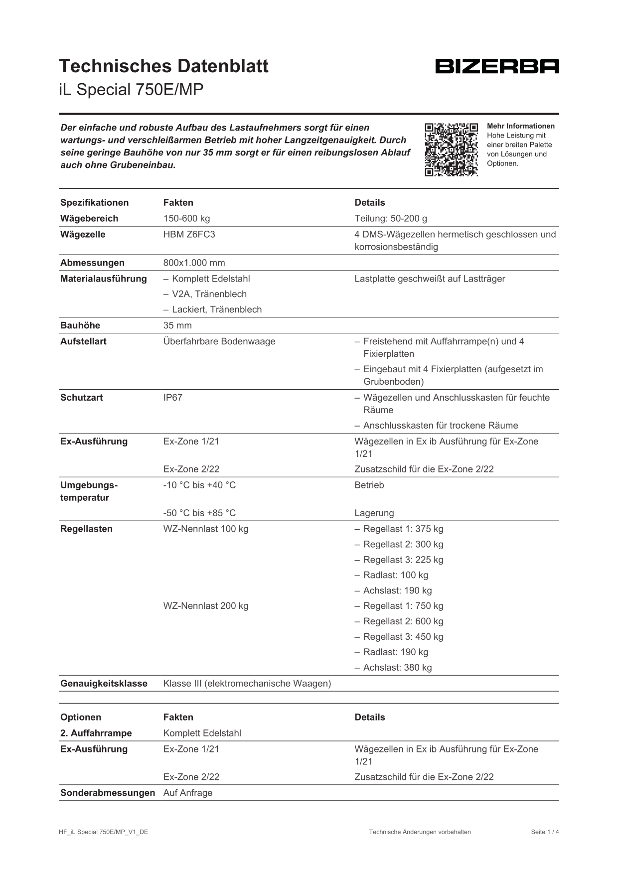 Der einfache und äußerst flache Aufbau des Lastaufnehmers gewährleistet einen wartungs- und verschleißarmen Betrieb mit hoher Langzeitgenauigkeit. Die Bodenwaage iL Special 750E/MP kann wahlweise eingesetzt werden: eingebaut oder freistehend, mit oder ohne Auffahrrampen, in Stahl lackiert, feuerverzinkt oder in Edelstahl. Daher bestens geeignet für viele Anwendungsfälle.